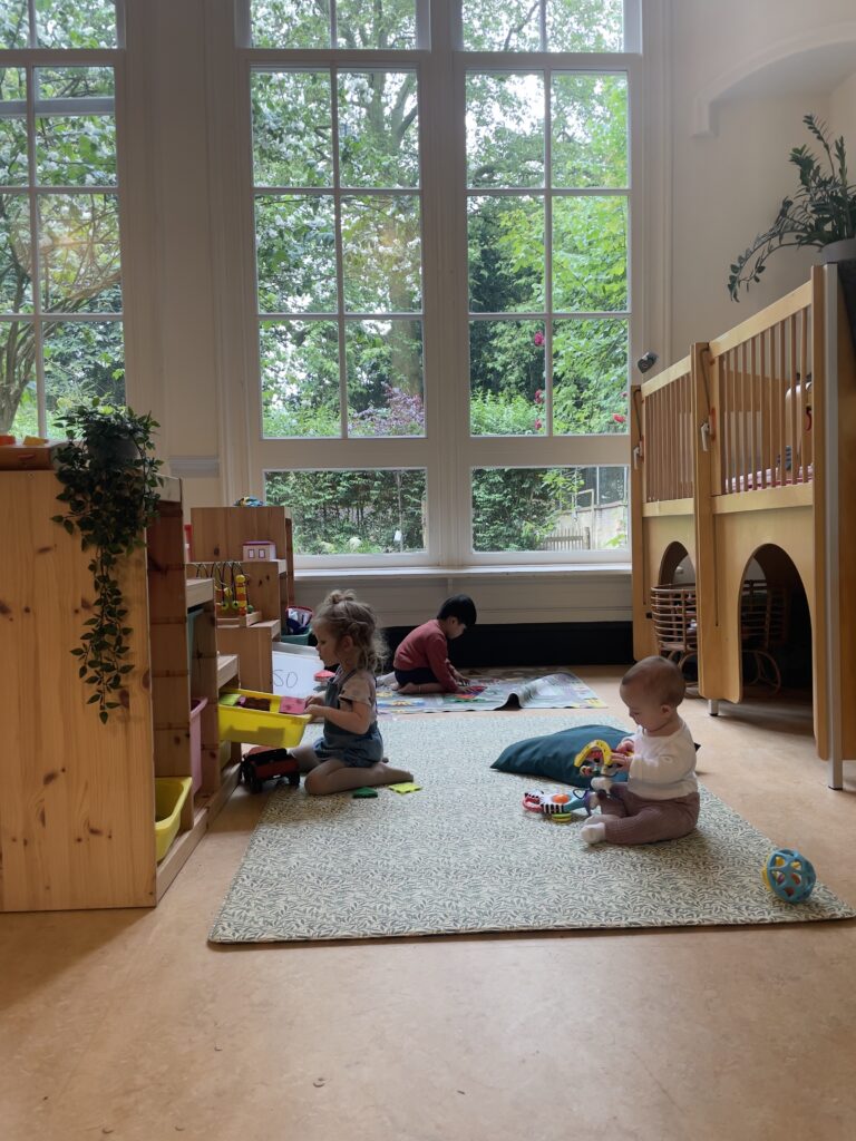 “De kinderen spelen op verschillende plekken: met Playmobil, LEGO, kleurmaterialen en Knex. De draaiers ondersteunen hen in het maken van keuzes en denken actief mee over geschikte speelplekken; “kleuren kan misschien aan tafel of op de grond, op de kussens kan het vies worden”. Zij gaan door de knieën tijdens gesprekken om op ooghoogte te communiceren.